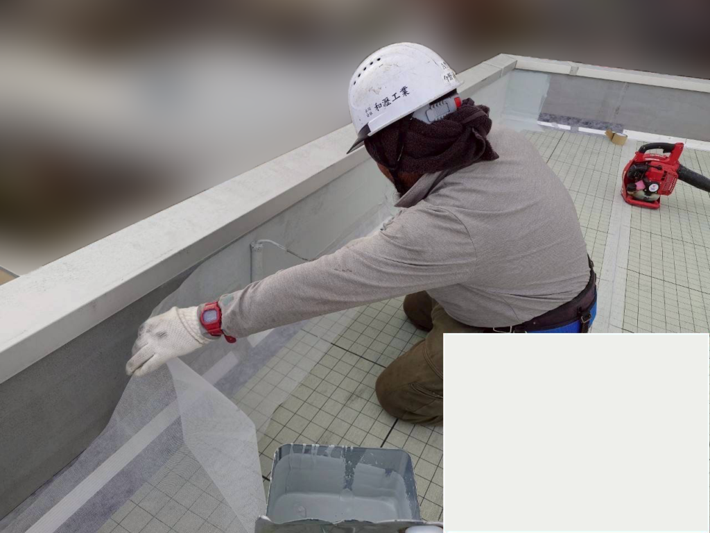 次に、立上り部に下塗りおよびメッシュを貼っていきます。